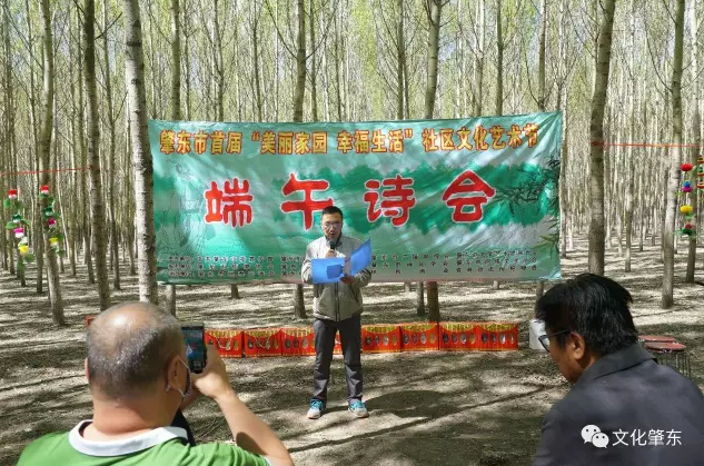 碧艾香蒲处处忙。谁家儿共女,庆端阳。在中华民族的传统节日端午节到来之际,由中共肇东市委宣传部、肇东市文广新局、肇东市广播电视台、肇东市文联主办,肇东市作家协会、肇东市文化艺术中心、肇东市诗词协会、肇东市网络文学学会承办,肇东市福泰兴酒业酒业、上海保利酒业、青岛劲派枸杞啤酒协办的肇东市首届“美丽家园 幸福生活”社区文化艺术节端午诗会在肇东生态园林举行。