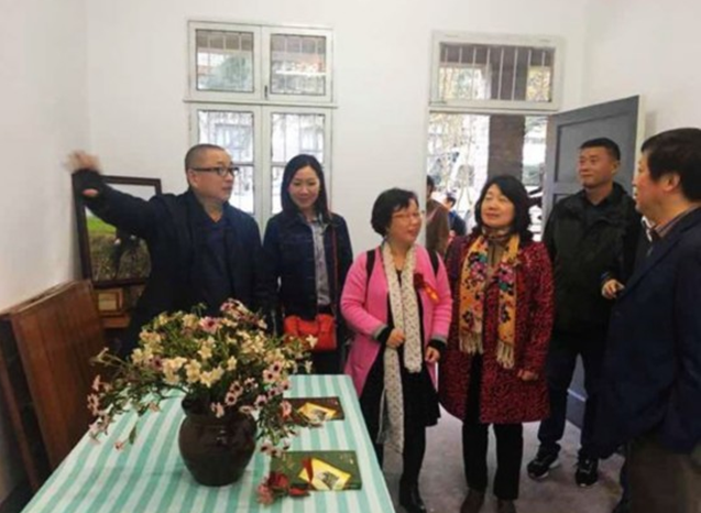著名作家刘醒龙(左一)参观驻村作家刘政屏工作室
