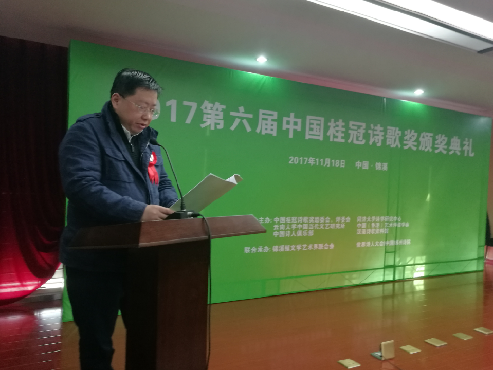 值此新诗诞辰百年之际,备受中国当代诗坛瞩目的“第六届中国桂冠诗歌奖”颁奖典礼,2017年11月18日下午在锦溪古镇文体中心盛大揭幕。