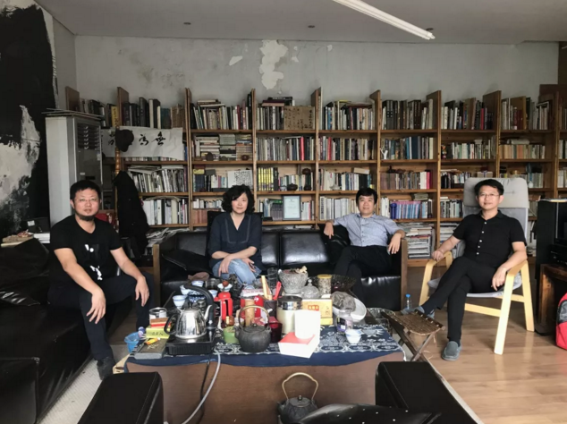 评委们在宋庄(左起:世宾、蓝蓝、张桃洲、龙扬志)