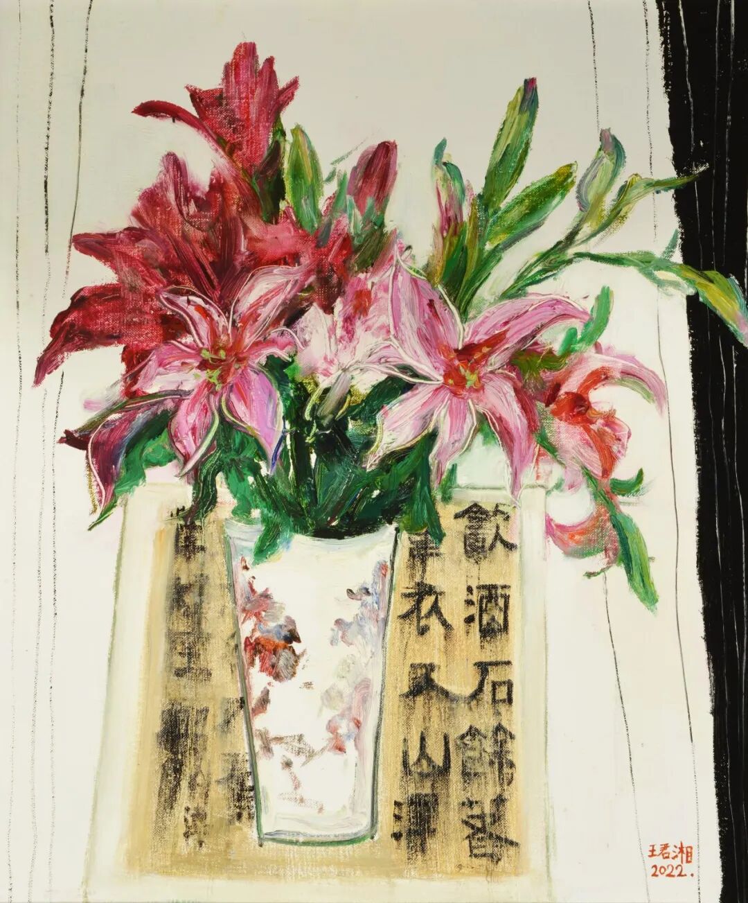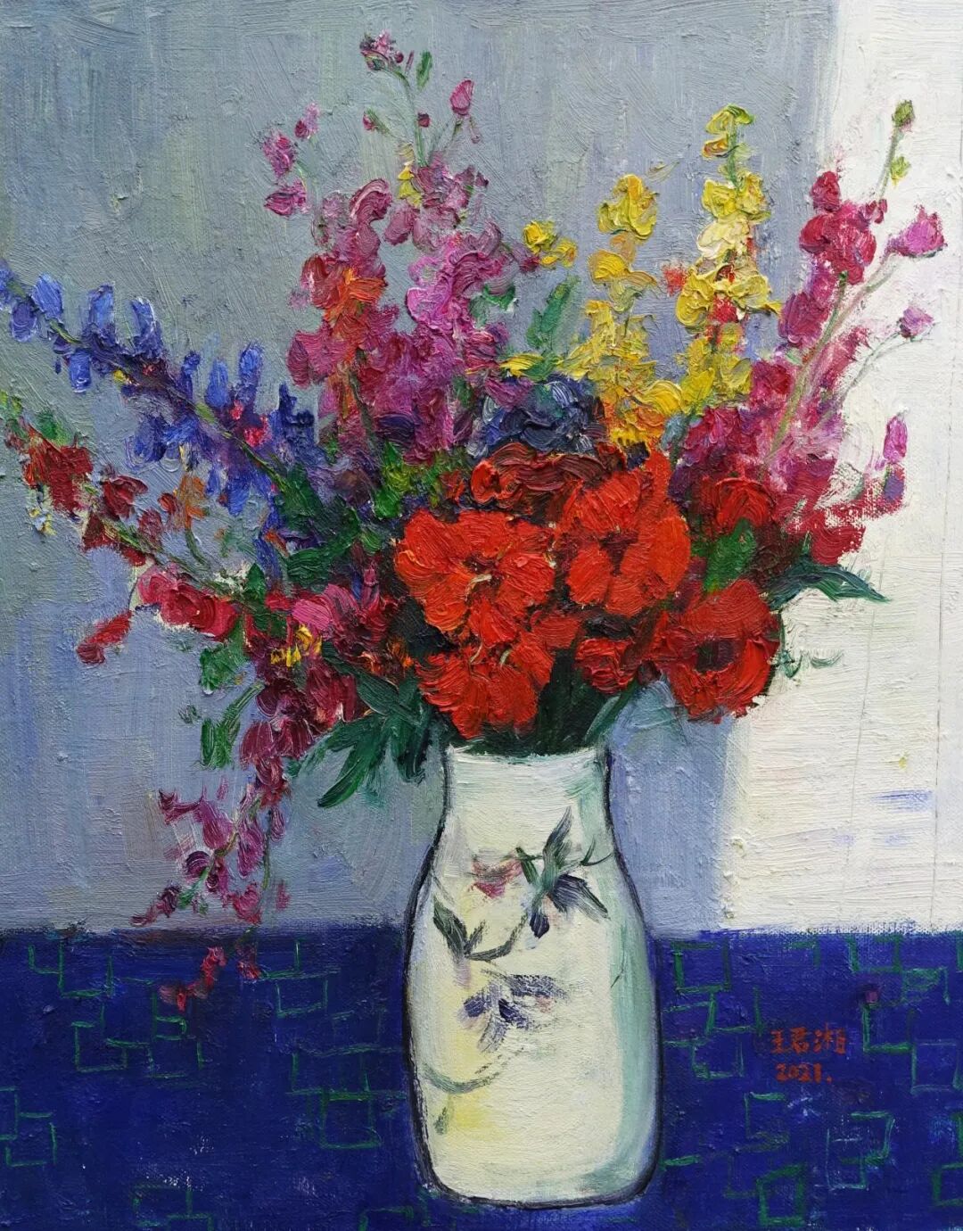 祖籍山东曲阜 毕业于中国戏曲学院 在校工作多年,现为职业画家。多次参加各种展览。 擅长于油画静物,侧重于花卉主题。多以喻意手法。表现生活的多种情绪,深信花 儿是大自然最浪漫的语言,色彩明亮,浑厚,热情奔放,在色彩的层层覆盖与色层的交织 中谱写浪漫与美的梦境。